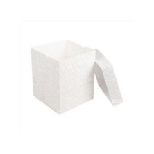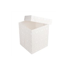 Cajas Pastelería Sin Ventana Blanca y Dorada 25,4 x 25,4 x 30,5 cm. Cajas de pastelería fabricadas en cartón nano - micro ondulado con 250 g/m². Muy resistentes y ligeras. Ideales para postres altos. Biodegradables y reciclable. Aguanta temperaturas de -18ºC hasta +70ºC. Dimensiones: 25,4 x 25,4 x 30,5 cm.